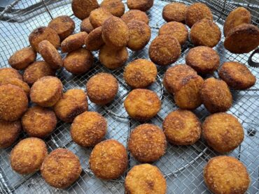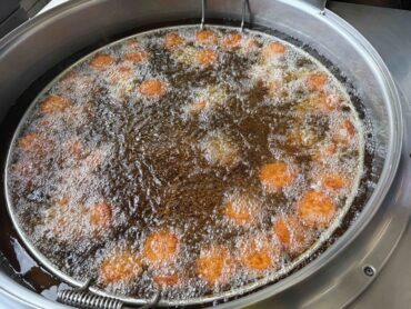 | コロッケを揚げているところ | 高岡元気コロッケ |
