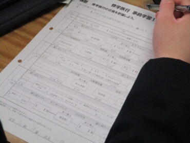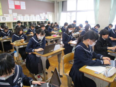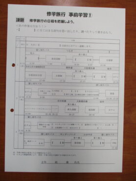2026.2.6 NEW 2学年 2年生 修学旅行事前学習開始 学年集会のあと各クラスに戻り、いよいよ修学旅行事前学習の開始です。最初に、クラス別学習のコースを希望順位で1位から4位まで並べました。 そのあとは、3日間の日程確認です。 どの電車で行くか。どの駅で乗り換えるか。どこをまわるか学習端末で調べて記入していきます 給食の後は、眠そうな人もいますが、今日は、全員目がぱっちりです。 後半は、桃鉄を使って近畿地方の各府県の調べ学習です。 帰りの会でコース別学習の希望をとるプリントを配布します。家庭で話し合われて、希望を入力してください。