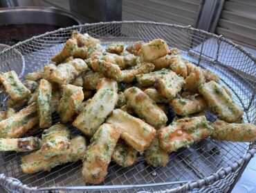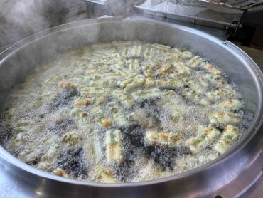 | 青のり入りトロを付ける | 色付くまでカラッと揚げる |