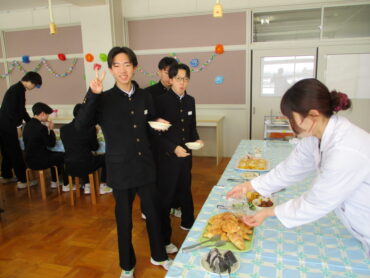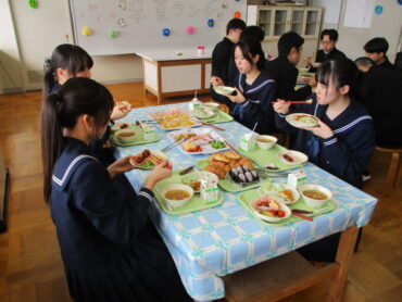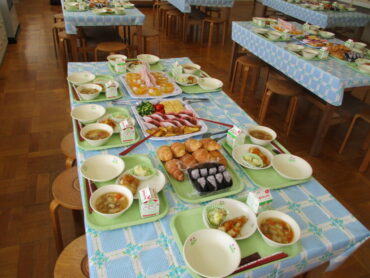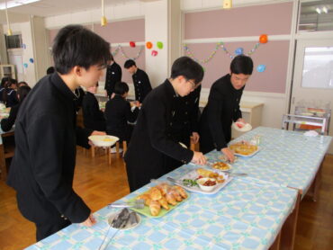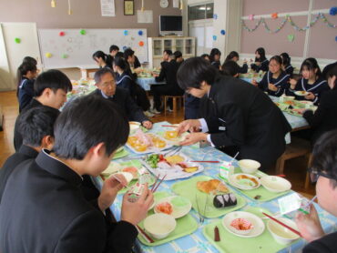 いつもよりも格段に豪勢な給食をおいしくいただきました。