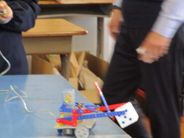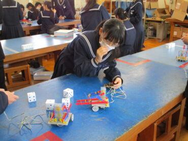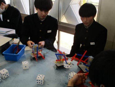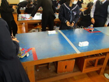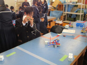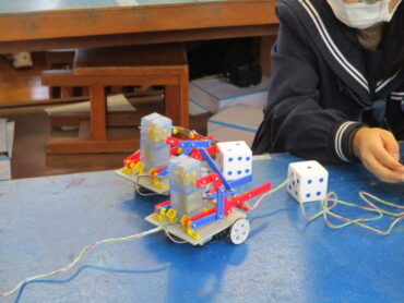 2026.2.19 3年技術科 ロボットコンテスト 3年生の技術は、制作したロボットを使ってコンテストをやっています。 練習タイムです。リモコンの操作がなかなか難しい。 上手に、サイコロを持ち上げる人もいれば、自分の意志とは反対方向に動くロボットも。 いよいよコンテストです。 ルールは、決められた時間内にサイコロを自分の陣地に多く集めた方が勝ちです。 時間は60秒 頑張っています!