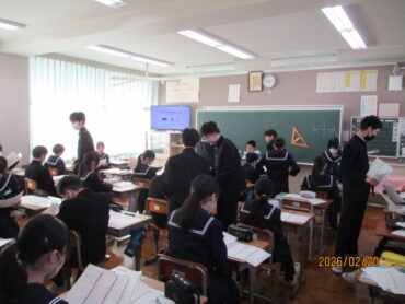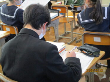 時間割の黒板をみると、どのクラスもテストが返却されその復習をするという時間が多いようです。