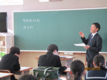 英語のテストの答え合わせをしています。先生の解説のもと、一つ一つをもう一度復習していました。