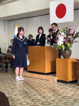 2月20日(金)、本校吹奏楽部が高岡市学校教育振興会表彰を受賞しました。吹奏楽部を代表して、3年生の前部長が表彰式に出席しました。
