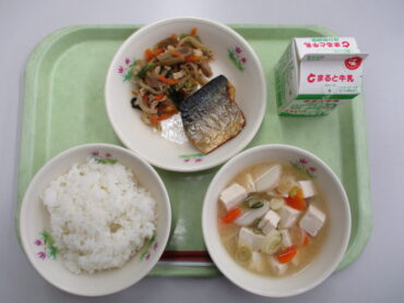 2026.2.26 1学年 2学年 3学年 全校生 2月25日の給食を紹介します 2月25日の給食は、ごはん 、牛乳、 鯖の塩焼き、こんにゃくと野菜の炒め煮、みそけんちん汁でした。 予定献立表では、切干大根の炒め煮でしたが、こんにゃくと野菜の炒め煮に変更になりました。
