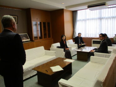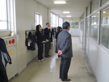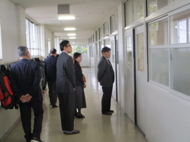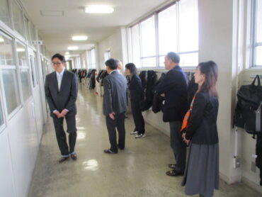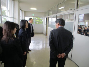 本日午後、第2回学校評議員会を開催しました。最初に、3名の学校評議員の方とPTA会長さんに、授業の様子・生徒の様子を見ていただきました。
