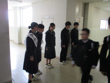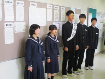 2026.2.27 1学年 2学年 全校生 選挙運動も最終章!ー生徒会長選挙ー 令和8年度前期の生徒会長選挙は、本日、2月27日(金)に行われます。 立候補者による選挙運動も大詰めをむかえました。 朝、登校してくる生徒に対して、「清き一票を、ぜひ私にください!」・・生徒会を更にグレードアップしたいという熱き思いを伝えています。