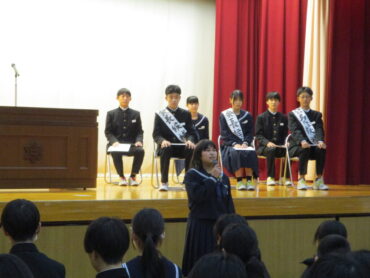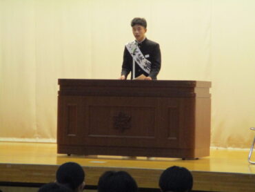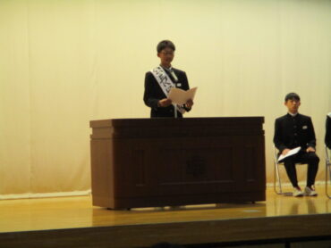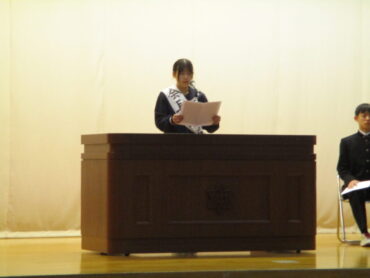 立候補者の演説、応援弁士の応援演説がありました。どの候補者もすばらしい公約を発表し、生徒会にかける熱い思いを伝えていました。