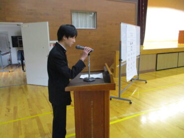 立ち合い演説会のあとは、いよいよ投票です。最初に、選挙管理委員会委員長のあいさつです。