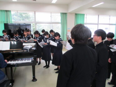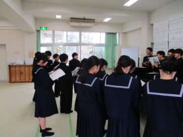 2026.3.2 NEW 1学年 1年音楽 卒業式の歌「正解」を練習しています! 卒業式に向けて、1・2年生の歌の練習もすすめられています。 今日の1年2組の音楽の授業は、卒業式の全校合唱で歌う「正解」の練習前に、「上を向いて歩こう」「なだそうそう」で声出しの練習です。 さすがわ、合唱コンクールで最優秀を取った2組。男性パートの声が、1年生とは思えないくらい 最後に「正解」を歌いました。 素敵な全校合唱を作り上げてほしいですね。