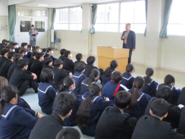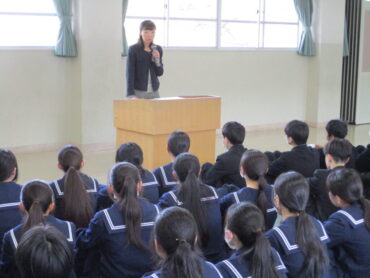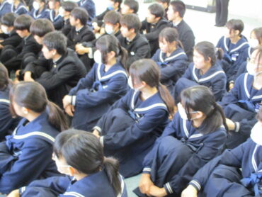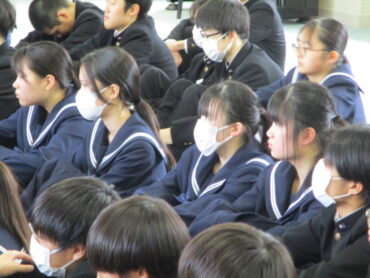 明日から県立高等学校の一般入試が始まります。既に進路先を決めた生徒もいますが、本校からも多くの生徒たちが受検します。3月4日4限に学年集会が行われました。最初に、校長先生から激励の言葉です。
