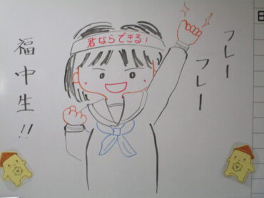 保健室前の掲示板には、応援イラストが!「君ならできる」、自分を信じて。