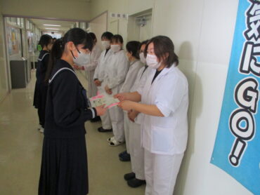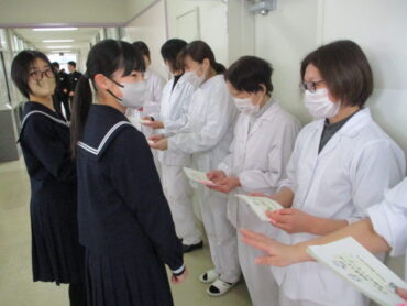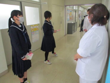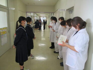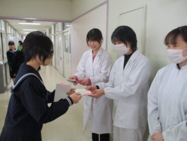 2026.3.9 1学年 2学年 3学年 全校生 給食委員会 調理員さんへ感謝のメッセージを贈りました! 3月9日(月)お昼休み、給食委員会から5名の調理員さんと栄養士さんへ全校生徒の感謝のメッセージを贈りました。 調理員さんたちは毎日朝早くから給食室で調理いただいているので、生徒と接する機会はほとんどありません。しかし、毎日おいしい給食をいただくことで、生徒たちは調理員さんたちへの感謝の気持ちを高めていったのだと思います。 給食委員会のみなさん、素晴らしい企画をありがとう!