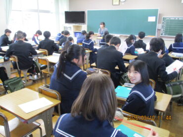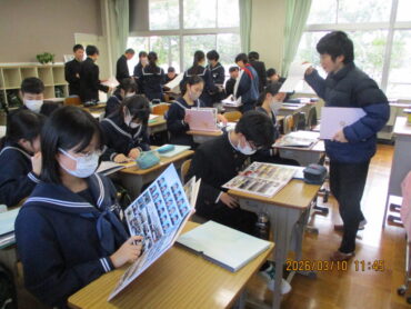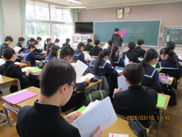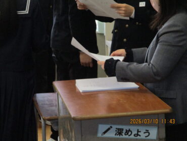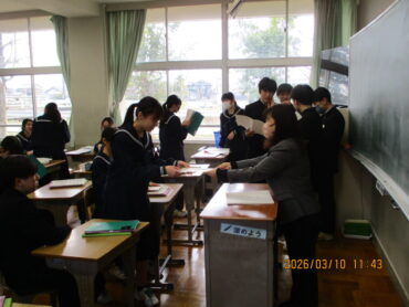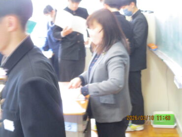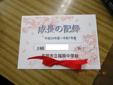 3月10日(火)4限、3年生の学活もあと2回になりました。この時間に、成長の記録やキャリヤパスポートなどが配られていました。