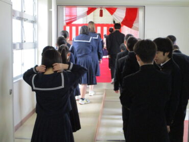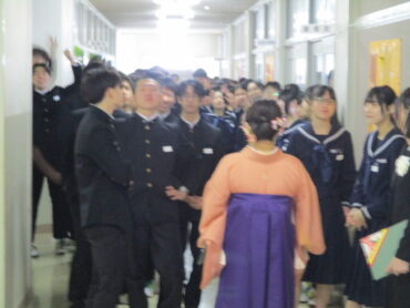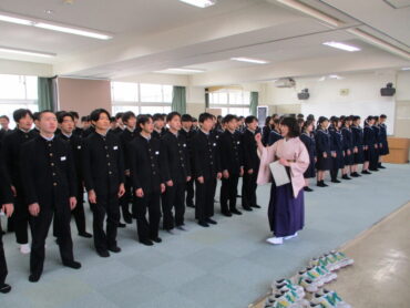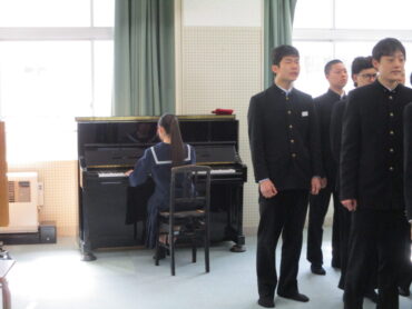 2026.3.12 NEW 3学年 卒業式前最後の練習 3年生は卒業式前に福中ルームで最後の練習を行いました。 式の緊張もありますが、大きな声で歌いました。 答辞もピアノ尾に合わせて練習しています。 練習も終わり、いよいよ入場です。
