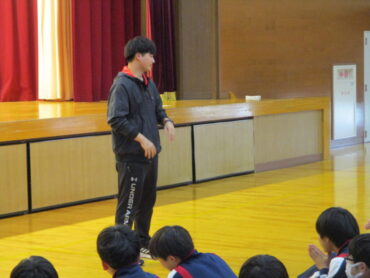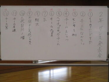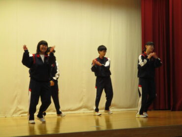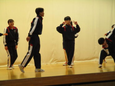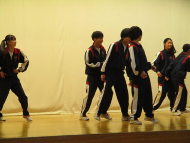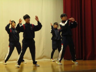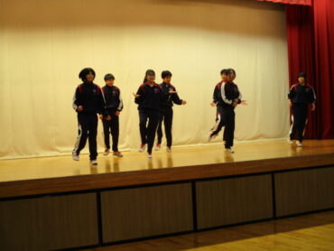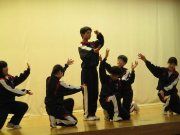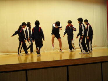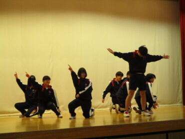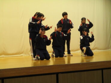 2026.3.23 NEW 2学年 2年生は ダンス発表会!(3) 2年生は、3月19日(金)の5時間目にダンス発表会を開催しました。2年生は、昨年も発表会を行っているので、1年生以上に工夫が見られます。最初のスタートのポーズにも! 外向き円陣でスタート フォーメーションにも工夫が見られます きれきれダンス! 頭を押さえる部分もかわいく表現します。 決めポーズが決まりました。 オープニングも各グループ様々な工夫が! リズムに乗ってますね。 最後に、学年の先生を代表して2組の担任の先生が講評しました。