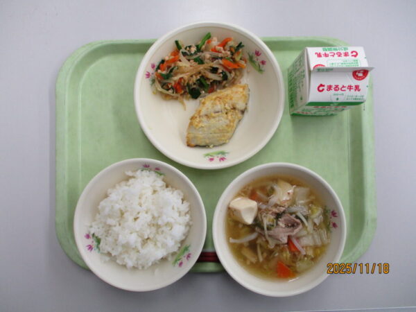 1学年2学年3学年全校生11月18日の給食を紹介します