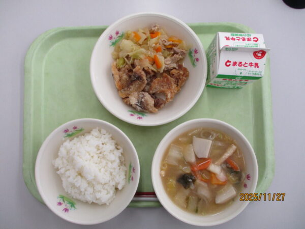 1学年2学年3学年全校生11月27日の給食を紹介します