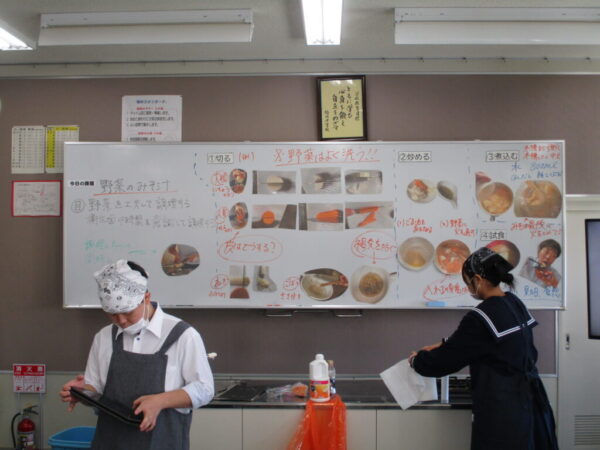 2学年2年家庭科 調理実習 野菜の味噌汁を作ろう!