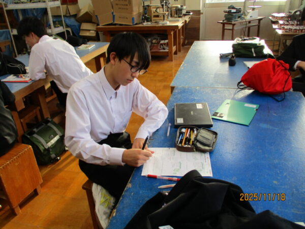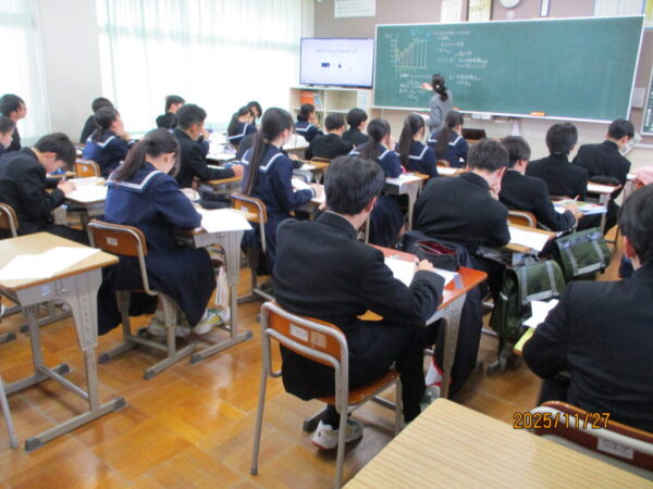 3学年全校生11月25日 期末考査2日目 5教科のテストです!